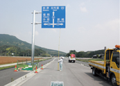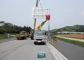 大型標識の架設の際は一時通行を遮断して行うこともあります。