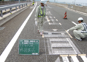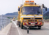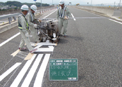 高速道路など、長い延長の施工に際しては、自走式のマーカ一車を使用して施工します。